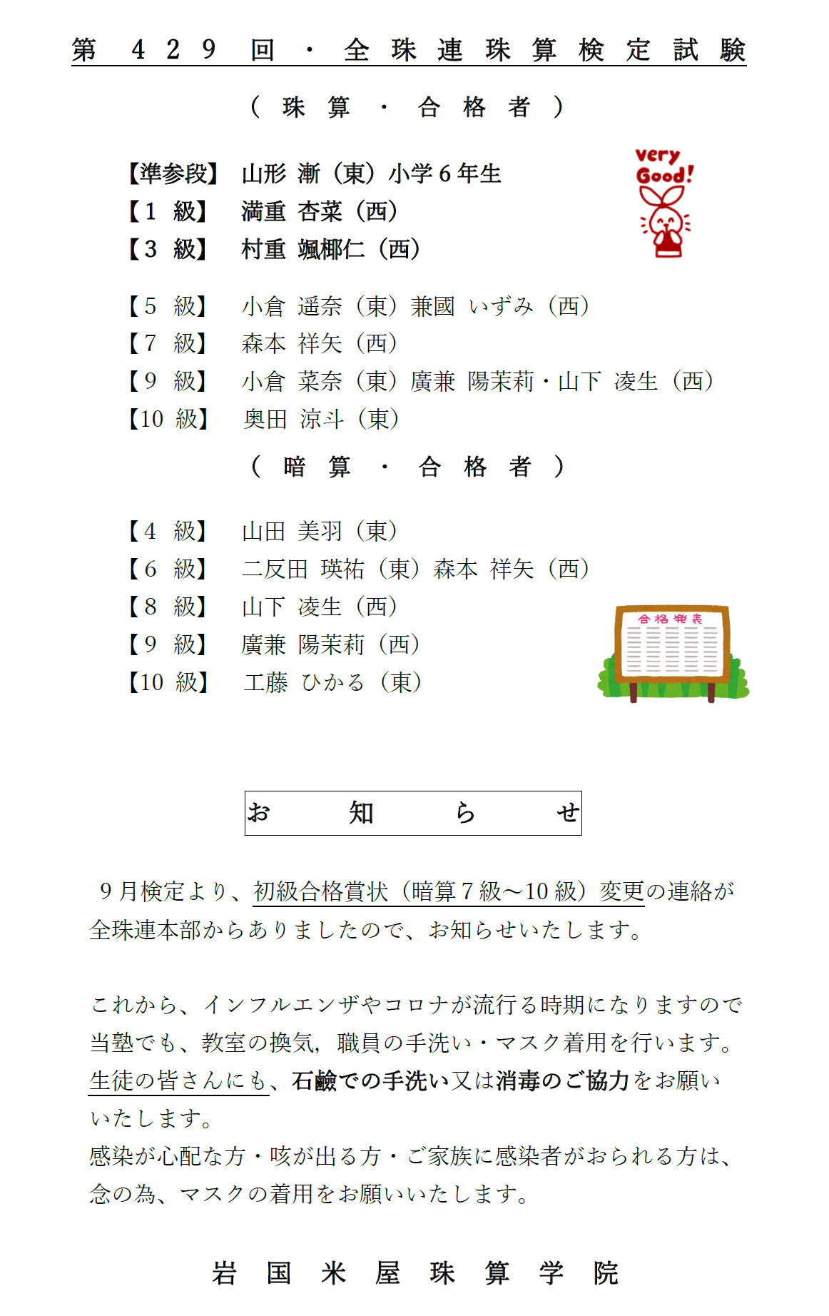 米屋珠算学院で楽しく一緒にそろばん! 公益社団法人 全国珠算教育連盟 正会員指導教場 そろばん授業見学受付中!お気軽にお問い合わせください。 米屋珠算学院(東教室:事務局) 住所山口県岩国市昭和町2-1-8 最寄岩国駅東口から(線路沿い)徒歩4分 通学駐輪場あり/送迎用駐車場あり 米屋珠算学院(西教室) 住所山口県岩国市岩国2-7-37 最寄椎尾神社バス停より(臥龍橋通り)徒歩4分 通学駐輪場あり/駐車場なし